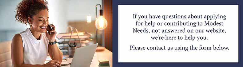 Modest Needs receives a large number of emails daily. For a prompt response from the person best qualified to help you, please send your question or comment to the email address below that most closely matches your reason for writing.